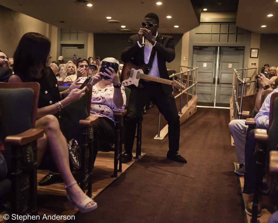The night’s brass section backing up Keith Johnson and Jamell Richardson as they honored previous Mississippi Songwriters Hall of Inductees B.B. King, Sam Cooke, Bo Diddley, Muddy Waters, Howlin’ Wolf, Willie Dixon, and this year inductee John Lee Hooker.