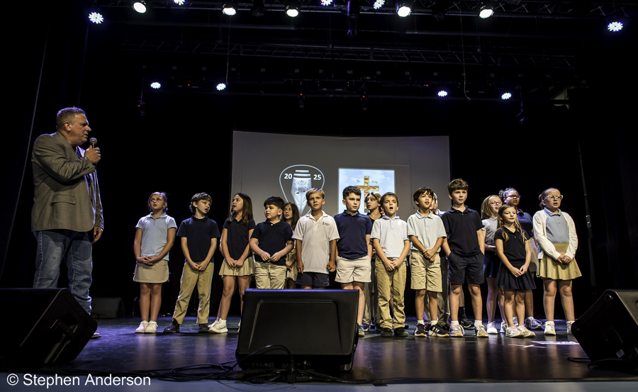 MSA’s Sean Gasaway with students from Lighthouse Academy for Dyslexia performing “His Story.”