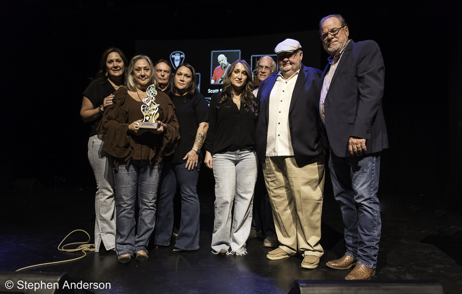 Dixie Stradtner and daughters Robyn, Sandy, and Mandy accepted award from the Mississippi Songwriters Alliance. (Scott and Dixie’s daughter, Jenny, was unable to attend, but we wanted to mention her, too). Scott is deeply missed by all.